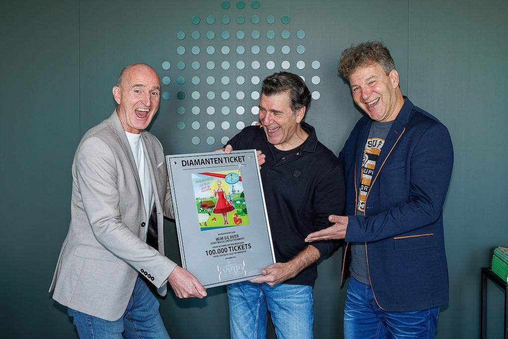 Het succes van de Juf Roos theatershows blijft de afgelopen jaren maar verder groeien. Steeds meer families met jonge kinderen bezoeken de muzikale en avontuurlijke voorstelling over het leven van Juf Roos en Gijs. Vandaag was een unieke dag voor de makers van deze voorstelling. Sony directeur Wim de Beer ontving uit handen van producenten Erik van Trommel en Gert-Jan van den Ende, ook bekend van hun alter ego’s Ernst en Bobbie, een VVTP Diamanten Ticket voor de verkoop van meer dan 100.000 kaarten. Dit is uniek want nog nooit eerder werd een VVTP Diamanten Ticket uitgereikt voor de verkoop van meer dan 100.000 kaarten voor een Nederlandse kindervoorstelling.