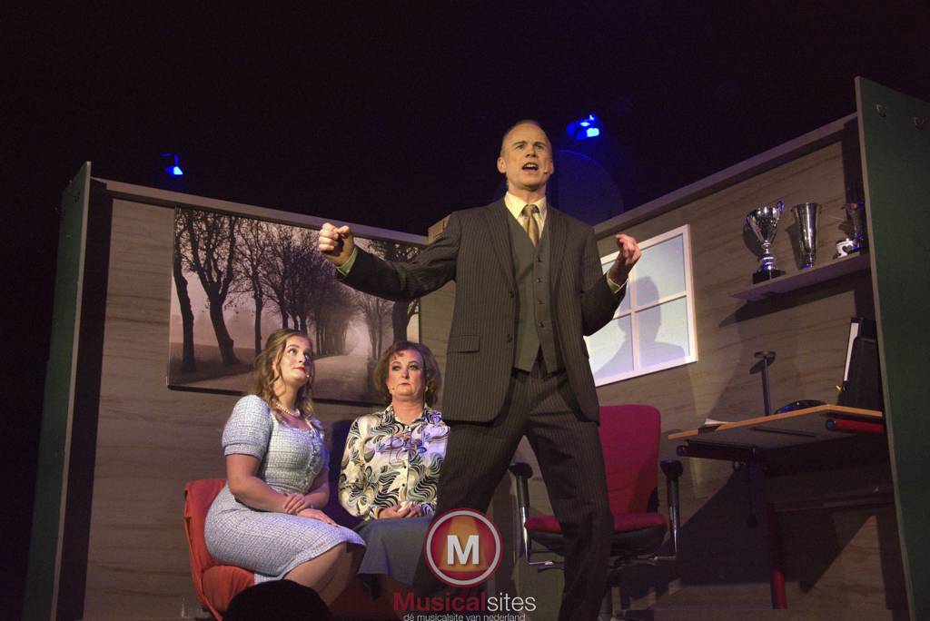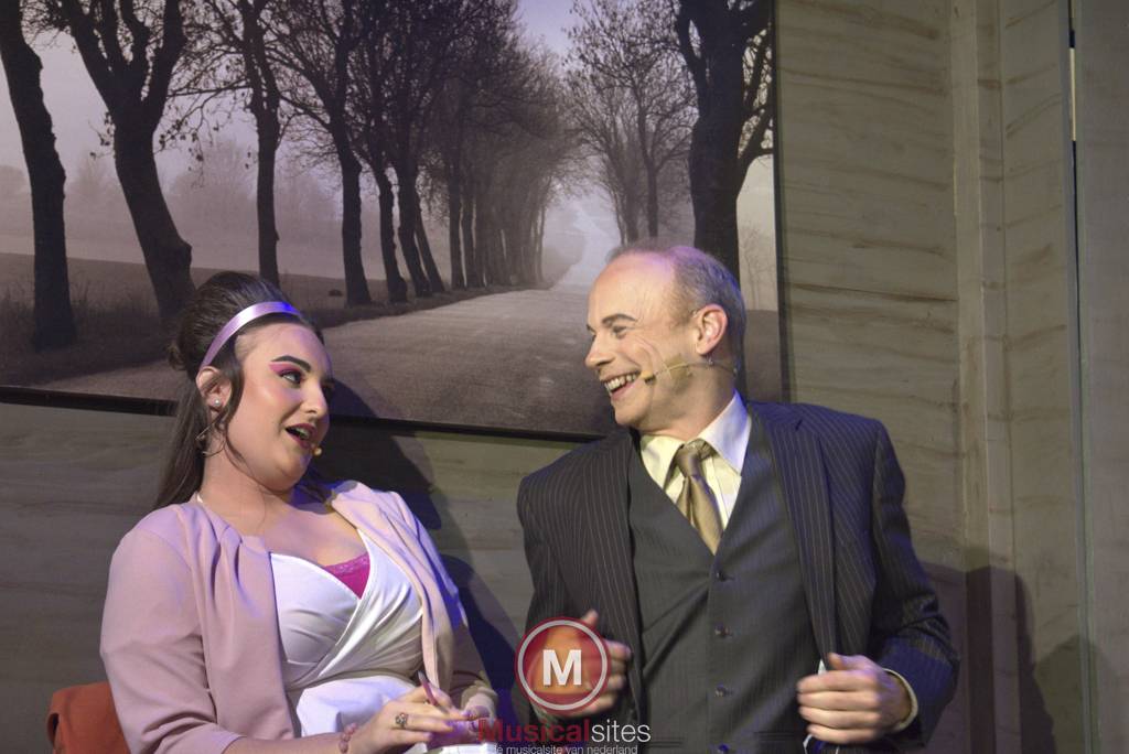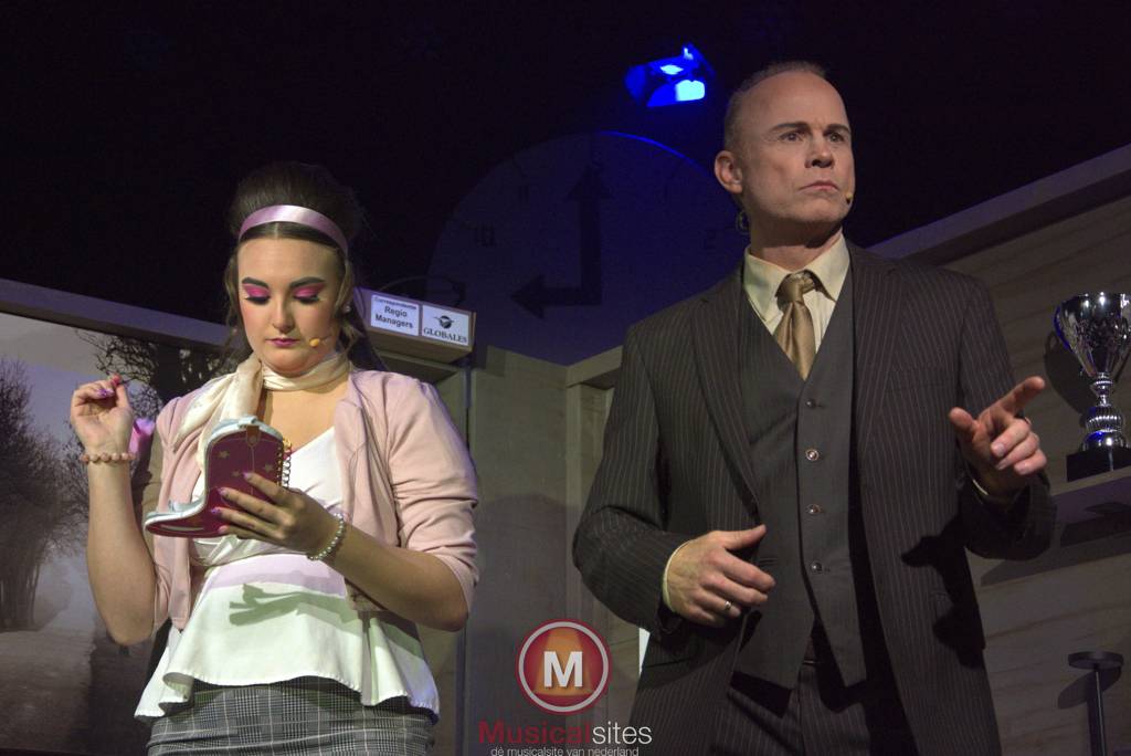 De strijd tussen Violet en Harts loyale medewerker Roz Keith (Susanne) wordt mooi gerepresenteerd door de toegewijde speelstijlen van beide performers. De gedetailleerde fysieke comedy van Susanne’s vertolking van Roz – wie wist dat een bril herhaaldelijk omhoog duwen zo grappig kon zijn? – mag inderdaad niet onbenoemd blijven. Caecilia doet kleine aanpassingen aan de volgorde en selectie van liedjes, en het is jammer dat we Roz niet verder leren kennen in haar ontbrekende solo-lied “Hart aan Hart”. Speak of the devil: Roland zet middels zijn lichamelijke bewegingen ongetwijfeld een creepy, vrouwonvriendelijke Franklin Hart Jr. neer. Waar zijn solo-lied moeilijk is om naar te kijken, is het prettig om naar te luisteren dankzij zijn toonvaste performance.