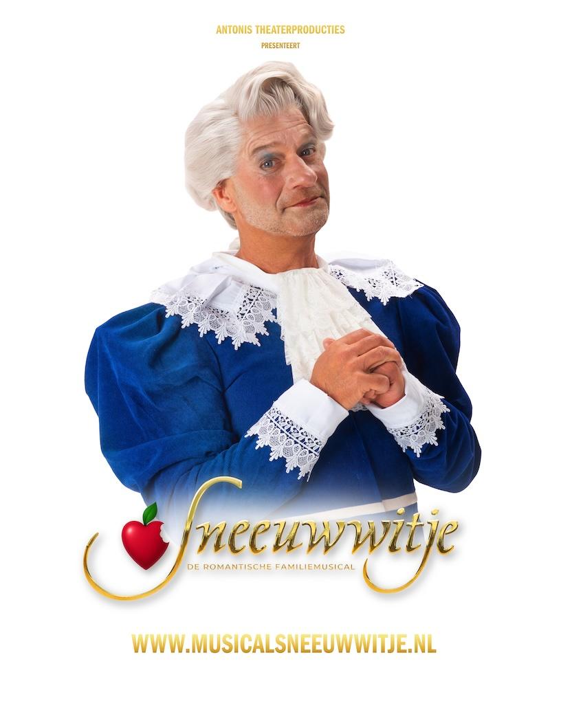 Met trots deelt Antonis Theaterproducties de eerste beelden van Ron Boszhard als Aimé in Sneeuwwitje – De Romantische Familiemusical. De acteur en presentator maakt dit najaar zijn langverwachte musicalrentree in de rol van de charmante en humorvolle lakei van de Koningin.