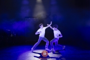 De voorstelling opent met een energieke verwijzing naar Saturday Night Fever, waarin Steven momenteel te zien is. Nadat hij eerst zijn indrukwekkende karatevaardigheden laat zien, schakelt hij moeiteloos over naar de iconische danspassen van de musical. Deze afwisseling tussen fysieke kracht en expressie loopt als een rode draad door de voorstelling: hij begint met karate en eindigt er ook mee, een symbolisch gebaar van strijd en bevrijding
