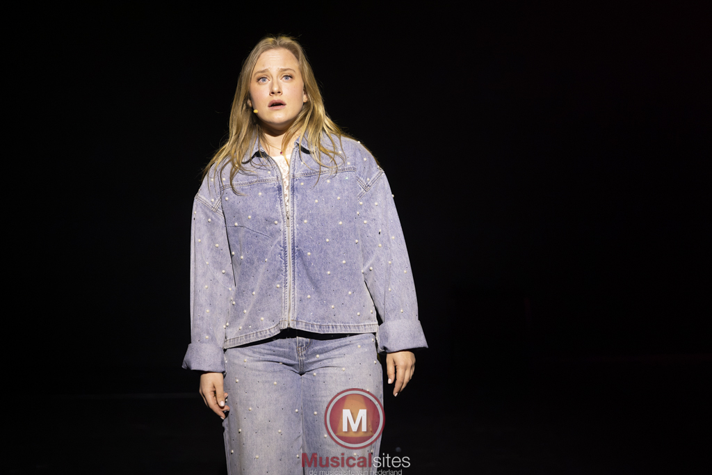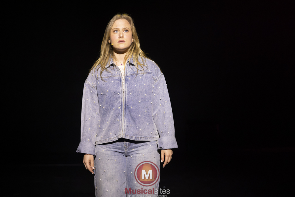 De voorstelling begon speels en enigszins absurd, met drie K3-achtige figuren (Imme de Beij, Ida Verspaandonk en Hazel Moens) die als een koor om haar heen bewogen. In deze komische setting speelde Jildou met beeldvorming en aannames. Wie is zij eigenlijk? Het musicalmeisje? De vrolijke noot? De zelfverzekerde verschijning? Met veel humor en een scherp gevoel voor timing zette zij deze verwachtingen neer om ze vervolgens subtiel te ondergraven. In haar openingsnummer over haar verlangen naar het musical vak klonk direct haar mooie, heldere stem. Haar zang is warm en muzikaal, met een natuurlijke uitstraling die nooit geforceerd voelt. Ze straalt plezier uit, maar laat tegelijk zien hoeveel verlangen er onder zit: de behoefte om gezien en begrepen te worden.