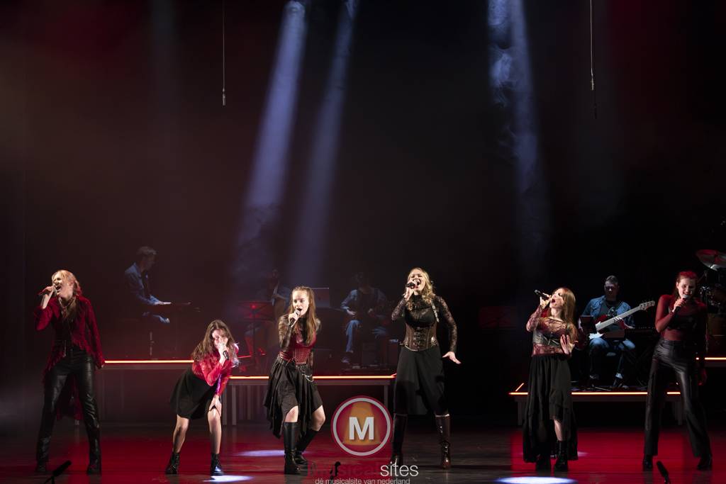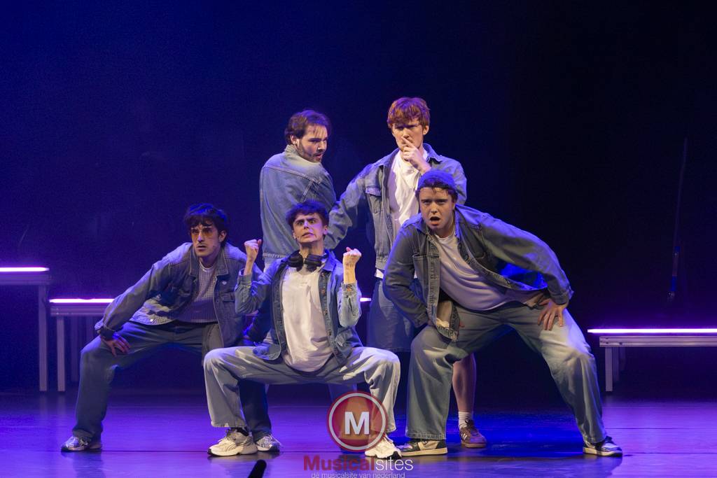 Vanaf de eerste minuut was voelbaar dat deze productie wordt gedragen door een gedeelde, gedurfde visie. Studenten uit het tweede, derde en vierde jaar stonden zij aan zij op het podium, gesteund door een zichtbaar bevlogen docententeam. In een razend tempo volgden scènes, zang en choreografie elkaar op, naadloos in elkaar overvloeiend. Wat een montagevoorstelling had kunnen zijn, voelde hier juist als één organisch geheel. De overgangen waren scherp en doordacht, en hielden de spanningsboog van begin tot eind strak gespannen.