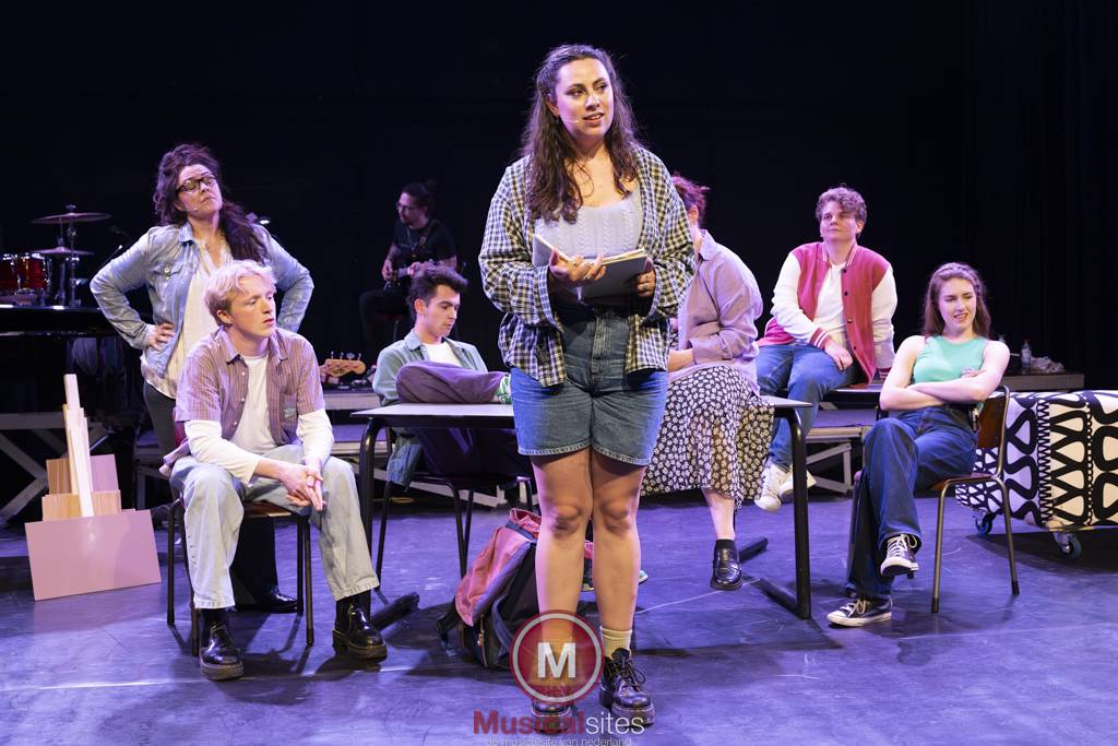 Juulke’s rauwe, krachtige stem is het kloppend hart van de voorstelling. Ze weet haar stemgeluid volledig ten dienste te stellen van haar personage en het verhaal, waardoor elk nummer aanvoelt als een persoonlijke bekentenis. Of ze nu fluistert of uithaalt — Juulke zingt altijd met betekenis. Haar kleurgebruik is rijk, haar expressie oprecht, haar timing loepzuiver. De muziek – vol ruige poprock – lijkt voor haar geschreven.