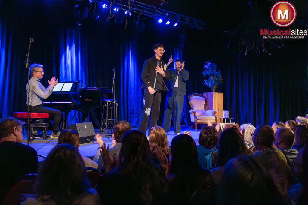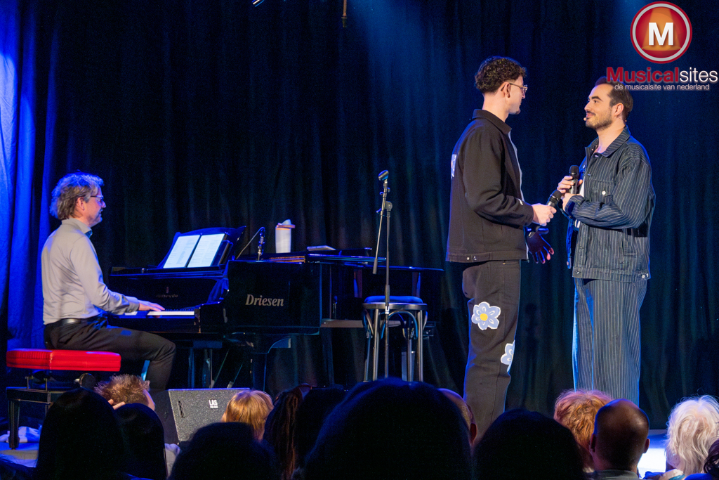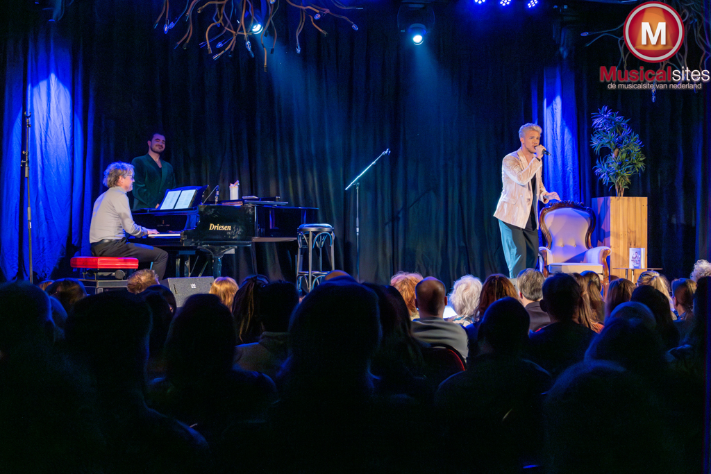 Er waren ook debuterende gastartiesten: de meest verrassende gast van de avond was niemand minder dan zijn grote steun en toeverlaat: hond Sip. Ze gaat mee naar elk theater, maar stond nog niet eerder op de planken. Als ode aan Sip zong Milan liefdevol de Toon Hermans klassieker ‘Lente Me’ toe. Sip gaf onstage direct een recensie, de interactie tussen baas en hond was prachtig om mee te mogen maken. Verder maakten we kennis met Floris van Delft, een natuurtalent ontdekt door Milan tijdens een van de zanglessen die hij in Nijmegen gaf. Floris maakte indruk met het repertoire uit Les Misérables, het is maar goed dat Milan zorgde voor een carrière switch en een auditie op Fontys heeft kunnen regelen. De laatste gast was geen debutant, maar mocht absoluut niet ontbreken deze avond: Paul Morris bracht een vleugje Dear Evan Hansen en een passend duet met Milan: For Good uit de musical Wicked. Verder leerden we pianist Rob Mennen beter kennen, het is mooi om te zien hoe een internationale musicalster als Milan iedereen op zijn podium zo enorm waardeert en een spotlight gunt.