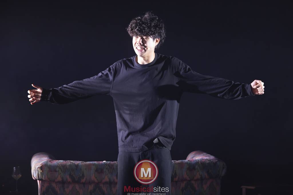 Robin von Stockhausen beet overtuigend de spits af met een ontroerende en gelaagde voorstelling over faalangst, perfectionisme en de zoektocht naar jezelf. Vanaf de eerste scène – tussen de half uitgepakte verhuisdozen – werd duidelijk dat dit geen licht verhaaltje zou worden, maar een persoonlijke reis vol herkenning en kwetsbaarheid. Robin weet met haar mooie, heldere stem en natuurlijke spel het publiek direct mee te nemen in het hoofd van haar personage. Het lied ‘Iedereen behalve ik’ zet de toon: rauw, eerlijk en pijnlijk herkenbaar. De onzekerheid, het constante vergelijken en het gevoel nooit goed genoeg te zijn, worden zonder opsmuk maar met veel zeggingskracht neergezet. Juist de eenvoud maakt het sterk.