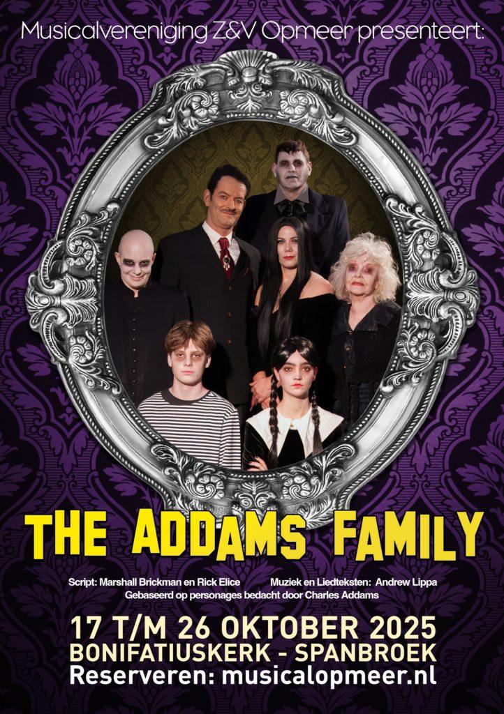 Na unieke musicalbelevenissen als ‘Whistle down the wind’ en ‘Evita’ op bijzondere locaties, laat Musicalvereniging Z&V Opmeer zich nu van de meest duistere kant zien! Voor het 90-jarige jubileum blazen zij de excentrieke familie Addams nieuw leven in. De levende familieleden én hun voorouders van lang gelee, kruipen uit hun krochten en nemen hun intrek in de tot theater omgetoverde Bonifatiuskerk in Spanbroek, gemeente Opmeer, voor deze hilarische en gitzwarte musicalkomedie.