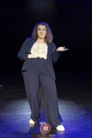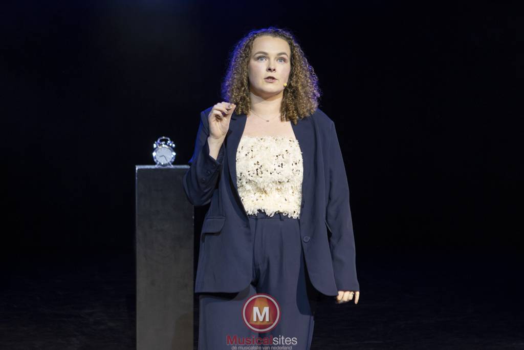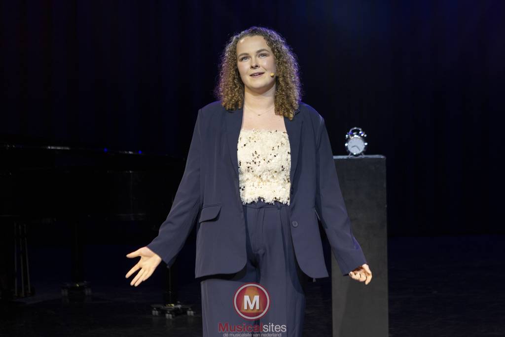 Femke van der Endt sloot de avond af met Stil de tijd, een reflectieve en intieme voorstelling die haar worsteling met tijd op poëtische wijze verbeeldde. Onder regie van Arjan van Twisk bracht Femke een krachtig zelfgeschreven werk dat zowel herkenbaar als diep ontroerend was. Met een scherp oog voor detail liet Femke zien hoe de staat van haar kamer een weerspiegeling was van de chaos in haar hoofd. Dit symbolische gegeven werd humoristisch verweven met een opmerking over haar rommelige vriend, wat zorgde voor een luchtige noot in een verder diepgaande voorstelling. Ze durfde haar publiek recht in de ziel te laten kijken door zich kwetsbaar op te stellen over haar angsten: de druk van een onzekere toekomst, het onbegrip van anderen over haar HBO-opleiding musicaltheater, en de vraag hoe ze haar passie zou kunnen combineren met een gezinsleven.