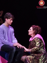Abstractie, realiteit en schijnwerkelijkheid lopen kriskras door elkaar en toch is het verhaal goed te volgen. Eerste speler Mariska van Meurs neemt je vanaf het begin aan de hand mee door het verhaal en doet dat meteen overtuigend. Ze laat je dan ook compleet in verwarring achter wanneer de verhaallijn van haar personage een onverwachte wending krijgt. Er is sprake van een leuke dynamiek tussen haar en titelrolspeler Casper Eggermont. In spel pakte hij het publiek meteen in. Zijn zangstem moest even warm worden, maar al gauw hoorde je waarom hij gecast is voor deze rol. Hij knalde de pauze in met het lied ‘Morgenrood’. Hierbij werd hij bijzonder versterkt door de kracht van de hele voorstelling: het ijzersterke ensemble!