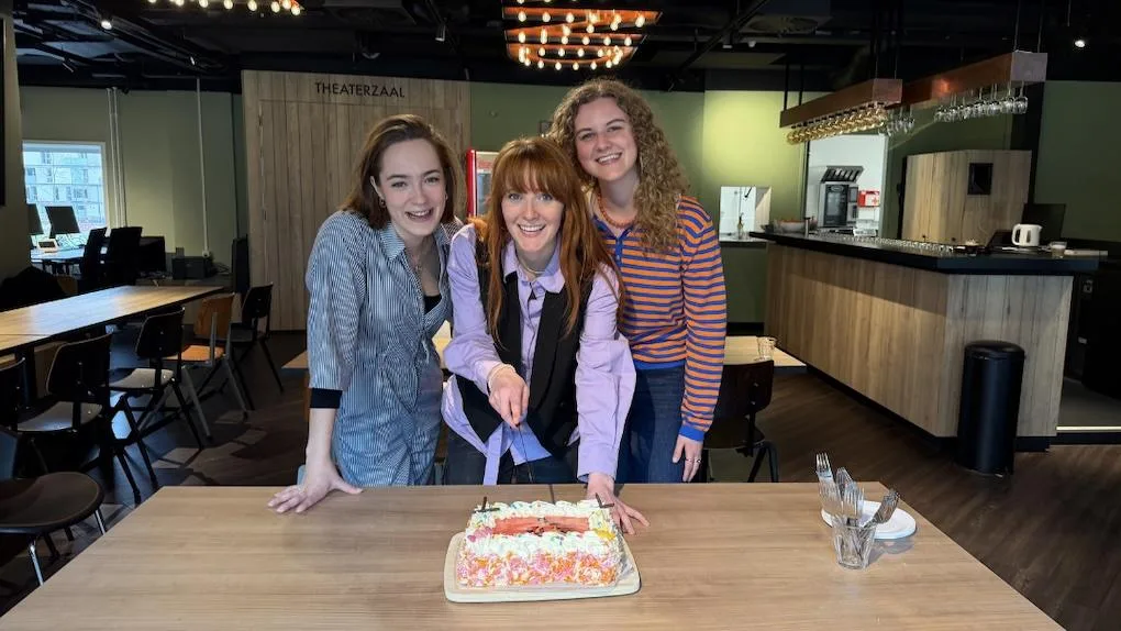 Club Satelliet (Judith Boesen, Elaine Hakkaart en Sterre Verschoor) zijn vandaag feestelijk gestart met de repetities van TRADWIVES de musical. Dat gebeurde in stijl met een échte traditionele slagroomtaart. Vanaf 22 mei is deze nieuwe oorspronkelijke Nederlandse musical te zien door heel Nederland.