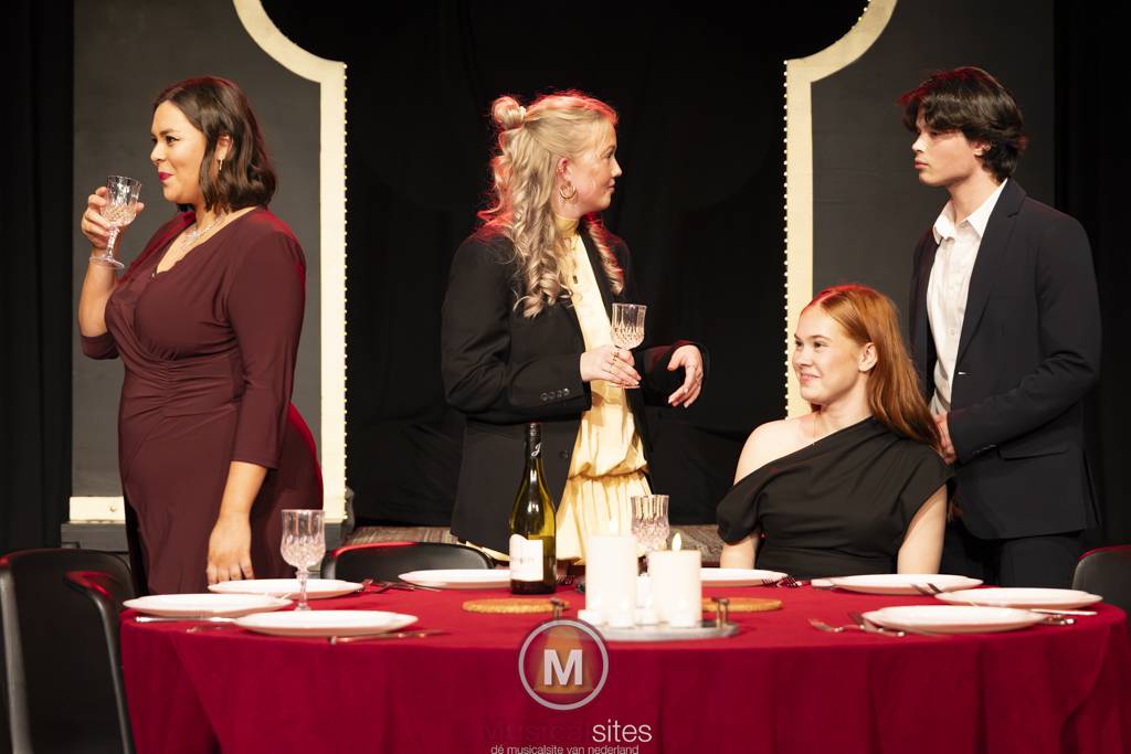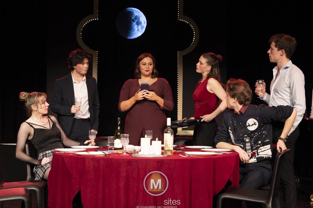 De avond opende met Alles op tafel, een voorstelling die zich afspeelt rond een jaarlijks terugkerend diner van een hechte vriendengroep. Wat begint als een vertrouwde traditie, verandert al snel in een confronterend spel wanneer wordt afgesproken dat alle telefoons zichtbaar op tafel liggen en elke melding hardop moet worden gedeeld. De voorstelling laat zien hoe ogenschijnlijk kleine digitale onderbrekingen grote gevolgen kunnen hebben. Berichten die normaal verborgen blijven, zorgen nu voor ongemak, wantrouwen en onverwachte onthullingen. De kracht van deze voorstelling lag in het tempo en de herkenbaarheid: het publiek werd voortdurend aan het lachen gemaakt, terwijl tegelijkertijd pijnlijk duidelijk werd hoe kwetsbaar vriendschappen en relaties kunnen zijn. De bewerking wist de spanning gestaag op te bouwen, waardoor humor en confrontatie hand in hand gingen en de waarheid letterlijk en figuurlijk op tafel kwam te liggen.